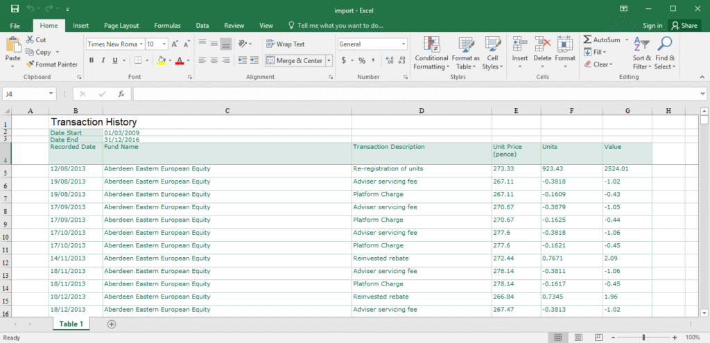 It is not necessary to filter your spreadsheets to filter out each investment at the export. You can simply enter the column number that has the name of the investment listed in. If your sheet contains