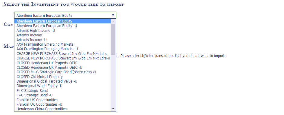Select the investment you would like to import