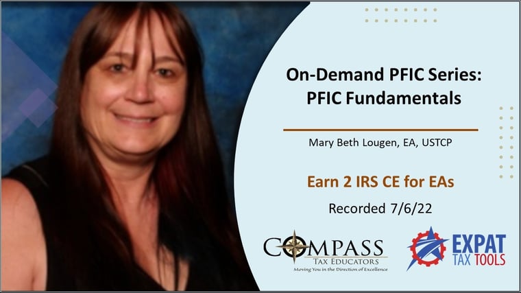 This course includes comprehensive computations required to complete Form 8621 under the default §1291 regulations. This course is aimed at practitioners with an intermediate level of understanding of PFIC taxation.